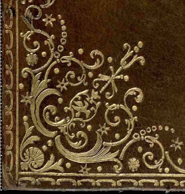 Shelfmark - Davis546 Held by - British Library Country - France Period - 18c Cover Material - Calf Colour - Brown Decorative Technique - Tooled in gold Style/Type - Dentelle Edges - Bookbinder - Derome le Jeune Ownership Mark - Author - Title - Place of Publication - Paris Date of Publication - 1745 Notes - Macchi states; last quarter century,. Born on October first 1731, Nicolas-Denis succeeded his father in 1760. He was the most expensive, but skilful craftsman of his time; always in demand so that he had to be helped by other binders, which explains the differing quality of his bindings. He adopted the à la dentelle decoration. He introduced on his covers the celebrated fer à l'oiseau (bird) motif for which he became famous but which he did not invent. He died in 1788. Derome le jeune and his family, signed with different tickets (R. Devauchelle, La reliure, p. 139; P. Ract-Madoux, Essai de classement chronologique, p. 382-389).S. de Ricci, French signed bindings, p. 91-91, n. 45, p. 120-121, n. 60, p.126-127, n. 63, p.128-131, n. 64). |